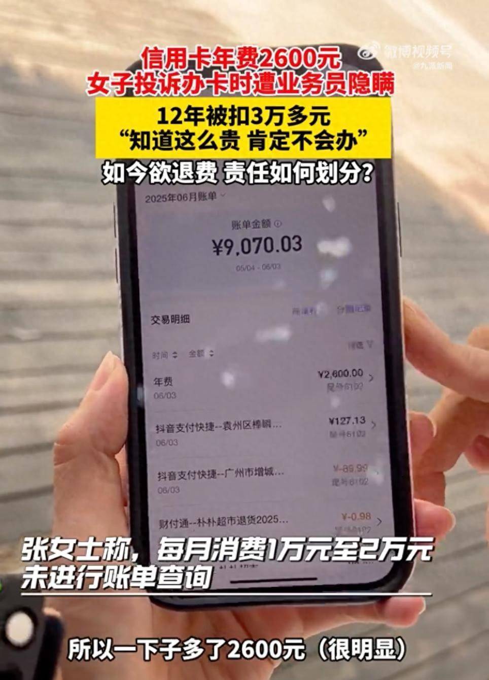张女士质疑,办卡时未被明确告知此费用,且每年扣费未收到短信通知,致其长期未能察觉,“如果说年费2600元,我肯定不会去用。”